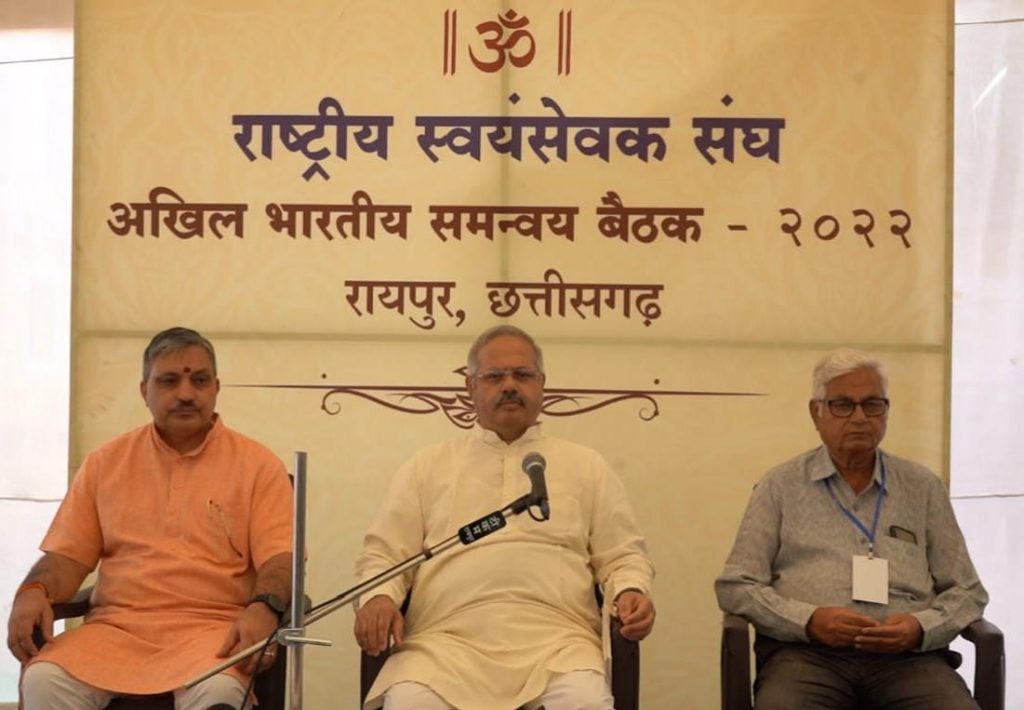 सूर्योदय भारत समाचार सेवा, रायपुर। राष्ट्रीय स्वयंसेवक संघ की अखिल भारतीय समन्वय बैठक-2022 रायपुर में हो रही है, जिसमें 36 संगठनों के प्रमुख पदाधिकारी सम्मिलित हो रहे हैं। इस बैठक के संबंध में पत्रकारों को जानकारी देते हुए अखिल भारतीय प्रचार प्रमुख सुनील आंबेकर ने कहा कि विद्या भारती, अखिल भारतीय विद्यार्थी परिषद, सक्षम, वनवासी कल्याण आश्रम, सेवा भारती, विश्व हिंदू परिषद, राष्ट्र सेविका समिति, भारतीय जनता पार्टी, भारतीय मजदूर संघ, भारतीय किसान संघ सहित अनेक सहयोगी संगठनों के प्रतिनिधि सहभागी होंगे। उन्होंने बताया कि बैठक में सम्मिलित होने वाले सभी संगठन संघ से प्रेरित हैं, सभी समाज जीवन के क्षेत्र में स्वायत्त रूप से काम करते हैं, इन सब संगठनों की वर्ष में एक बार सितंबर माह में बैठक होती है, अपने कार्यों व अनुभवों को साझा करते हैं और इस अवसर पर एक दूसरे से सीखने और समझने का अवसर मिलता है। समान उद्देश्य और लक्ष्य लेकर कार्य करते हैं। कई संगठन मिलकर काम करते हैं जैसे आर्थिक समूह में गत वर्ष स्वावलंबी भारत अभियान प्रारंभ किया गया है, बैठक में इस प्रकार के सामूहिक कार्यों पर भी चर्चा होती है।आंबेकर ने बताया कि संघ में अनेक गतिविधियां चलती हैं जैसे गौसेवा, ग्राम विकास, पर्यावरण, कुटुंब प्रबोधन, सामाजिक समरसता के विषय पर, इन विषयों को आगे बढ़ाने पर भी चर्चा होगी। बैठक का उद्देश्य होता है कि समाज के सामने जो चुनौतियां आती हैं उनका संकलन कर एक दिशा तय करते हैं और राष्ट्रीय भावना से कार्य करते हैं, जिससे कार्य करने की गति बढ़ सके।सुनील आंबेकर ने बताया कि बैठक में सरसंघचालक डॉ. मोहन भागवत, सरकार्यवाह दत्तात्रेय होसबाले, सभी सह सरकार्यवाह डॉ. कृष्णगोपाल, डॉ. मनमोहन वैद्य, अरूण कुमार, मुकुंदा और रामदत्त चक्रधर सहित प्रमुख पदाधिकारी इस समन्वय बैठक सम्मिलित होंगे।