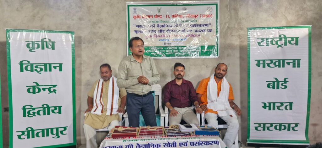 राजेश वर्मा, दौलतपुर / बाराबंकी : कृषि विज्ञान केंद्र-II (KVK-II), कटिया, सीतापुर के तत्वावधान में जनपद बाराबंकी के सूरतगंज ब्लॉक स्थित ग्राम दौलतपुर में ‘मखाना की वैज्ञानिक खेती’ के प्रति किसानों को जागरूक करने के लिए एक विशेष प्रशिक्षण कार्यक्रम का सफलतापूर्वक आयोजन किया गया। इस कार्यक्रम का उद्देश्य पारंपरिक खेती के साथ-साथ किसानों को नकदी फसलों और कृषि विविधीकरण से जोड़कर उनकी आय में वृद्धि करना था।