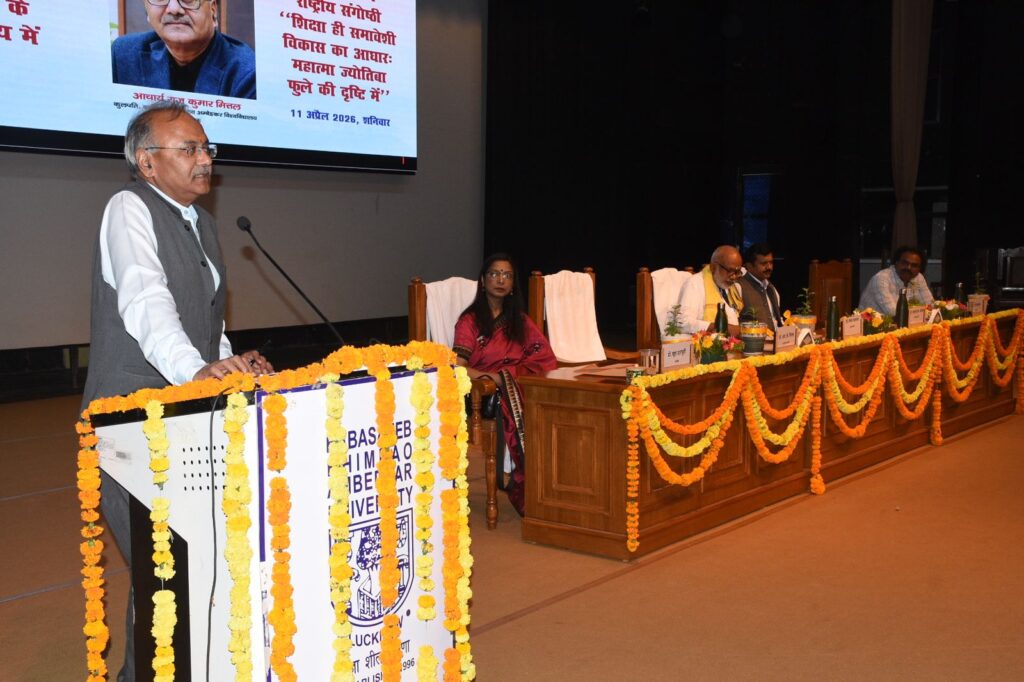 अशोक यादव, लखनऊ : बाबासाहेब भीमराव अम्बेडकर विश्वविद्यालय द्वारा शनिवार 11 – 14 अप्रैल तक चार दिवसीय ‘अम्बेडकर जयंती’ एवं ‘विश्वविद्यालय स्थापना दिवस समारोह’ के उपलक्ष्य में विभिन्न शैक्षणिक एवं सांस्कृतिक कार्यक्रमों, संगोष्ठियों और प्रतियोगिताओं का आयोजन किया जा रहा है, जिसका उद्घाटन शनिवार 11 अप्रैल को विश्वविद्यालय कुलपति प्रो. राज कुमार मित्तल द्वारा किया गया। कार्यक्रम के पहले दिन महात्मा ज्योतिबा फुले जयंती के अवसर पर ‘शिक्षा ही समावेशी विकास का आधार: महात्मा ज्योतिबा फुले की दृष्टि मेंं’ विषय पर एकदिवसीय राष्ट्रीय संगोष्ठी का आयोजन किया गया।