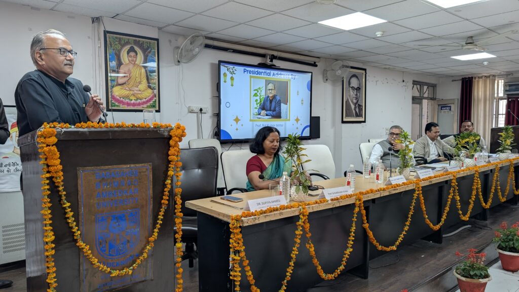 सूर्योदय भारत समाचार सेवा, लखनऊ : बाबासाहेब भीमराव अम्बेडकर विश्वविद्यालय में बुधवार 25 मार्च को विधि विभाग, सेंटर फॉर इनोवेशन, इनोवेशन एंड इंटरप्रेन्योरशिप, इंस्टीट्यूशन इनोवेशन काउंसिल एवं आंतरिक गुणवत्ता आश्वासन प्रकोष्ठ के संयुक्त तत्वावधान में बौद्धिक संपदा अधिकार विषय पर एकदिवसीय जागरूकता कार्यक्रम का आयोजन किया गया। कार्यक्रम की अध्यक्षता विश्वविद्यालय कुलपति प्रो. राज कुमार मित्तल ने की। मुख्य अतिथि के तौर पर ख्वाजा मोइनुद्दीन चिश्ती भाषा विश्वविद्यालय के कुलपति प्रो. अजय तनेजा उपस्थित रहे। इसके अतिरिक्त मंच पर विशिष्ट अतिथि के तौर पर उत्तर प्रदेश इंस्टीट्यूट ऑफ फॉरेंसिक साइंस के निदेशक डॉ. जी.के. गोस्वामी, मुख्य वक्ता के तौर पर आईटीएजी बिजनेस सॉल्यूशंस लिमिटेड, कोलकाता के फाउंडिंग डॉयरेक्टर डॉ. धनपत राम अग्रवाल एवं दिल्ली विश्वविद्यालय के प्रो. क्षितिज सिंह, विधि विभाग की विभागाध्यक्ष प्रो. सुदर्शन वर्मा, विधि अध्ययन विद्यापीठ के संकायाध्यक्ष प्रो संजीव कुमार चढ्ढा एवं कार्यक्रम समन्वयक डॉ. सूफिया अहमद मौजूद रहीं।