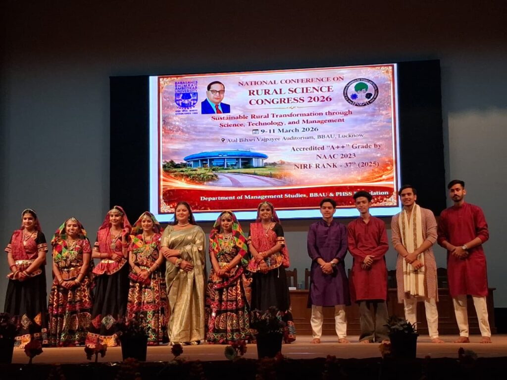 अशोक यादव, लखनऊ : बाबासाहेब भीमराव अंबेडकर विश्वविद्यालय (बीबीएयू), लखनऊ के अटल बिहारी वाजपेयी ऑडिटोरियम में सोमवार को “रूरल साइंस कांग्रेस-2026” राष्ट्रीय सम्मेलन का शुभारंभ हुआ। “सस्टेनेबल रूरल ट्रांसफॉर्मेशन थ्रू साइंस, टेक्नोलॉजी एंड मैनेजमेंट” विषय पर आयोजित इस सम्मेलन का आयोजन प्रबंधन अध्ययन विभाग, बीबीएयू तथा प्रो. एच.एस. श्रीवास्तव फाउंडेशन फॉर साइंस एंड सोसाइटी के संयुक्त तत्वावधान में किया गया।