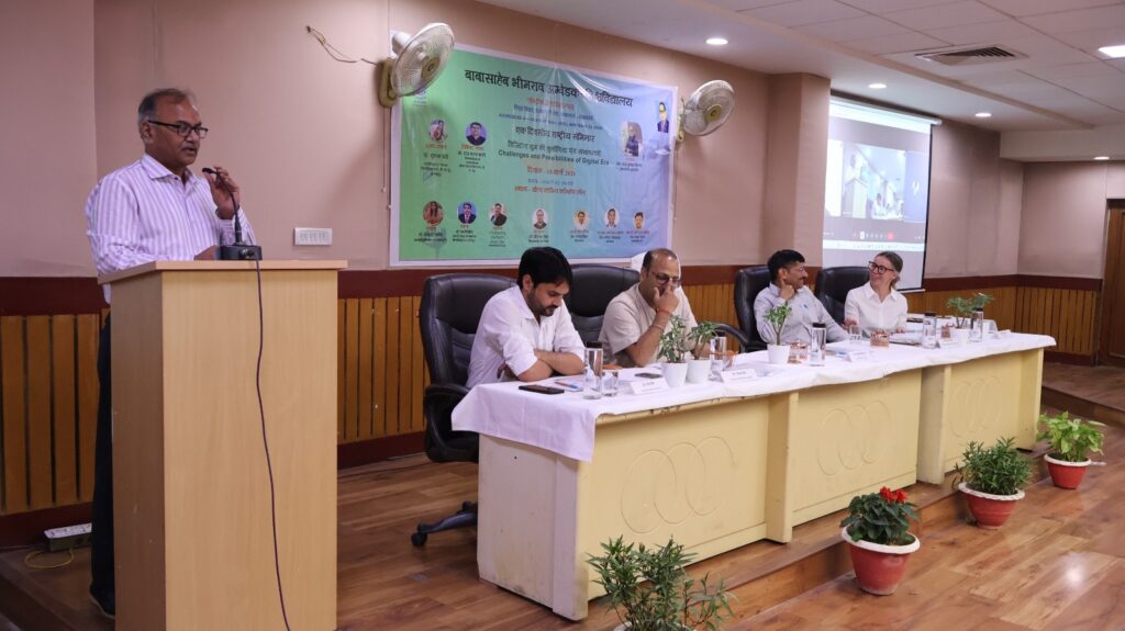 सूर्योदय भारत समाचार सेवा, लखनऊ : बाबासाहेब भीमराव अम्बेडकर विश्वविद्यालय में दिनांक 18 मार्च को योग विभाग एवं योग वेलनेस सेंटर के संयुक्त तत्वावधान में ‘डिजिटल युग की चुनौतियां एवं संभावनाएं’ विषय पर एक दिवसीय राष्ट्रीय सेमिनार का आयोजन किया गया। कार्यक्रम की अध्यक्षता विश्वविद्यालय कुलपति प्रो. राज कुमार मित्तल ने की। इसके अतिरिक्त मुख्य तौर पर शिक्षा विभाग, बीबीएयू के विभागाध्यक्ष एवं संकायाध्यक्ष प्रो. राज शरण शाही, योग विभाग के विभागाध्यक्ष डॉ. दीपेश्वर सिंह, पौलेंड के यूजेनियस पियासेकी शारीरिक शिक्षा विश्वविद्यालय की कटाऱजीना मीक्जनिक एवं आयोजन सचिव डॉ. नरेंद्र सिंह मंच पर मौजूद रहे। इसके अतिरिक्त दीनदयाल उपाध्याय विश्वविद्यालय, गोरखपुर की प्रो. सुषमा पांडेय ऑनलाइन माध्यम से जुड़ी !