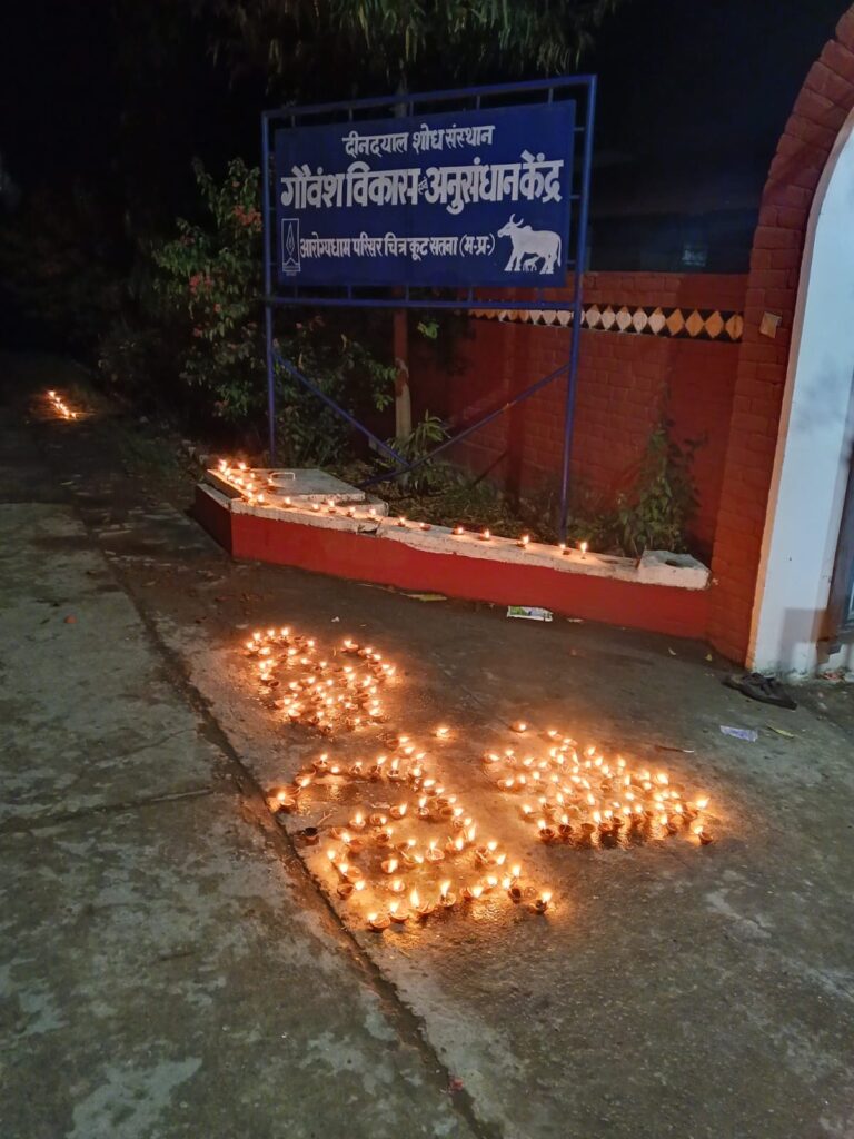 दीनदयाल शोध संस्थान को 1 लाख 21 हजार दीप प्रज्वलन का लक्ष्य था।डीआरआई के द्वारा सुरेन्द्रपाल ग्रामोदय विद्यालय गेट व राम दर्शन से लेकर उद्यमिता विद्यापीठ, आरोग्य धाम गेट तक तथा पंचवटी घाट, आरोग्य धाम परिसर, सियाराम कुटीर सहित रामनाथ गोयनका घाट, रामनाथ आश्रमशाला परिसर, बाल्मीकि परिसर मझगवां, तुलसी परिसर गनीवां पर 1 लाख 21 हजार से अधिक दीप प्रज्ज्वलित किये गए, जिसके लिए संस्थान के लगभग 500 कार्यकर्ता अपने पूरे परिवार सहित चिन्हित स्थानों पर शाम 5 बजे से ही तैयारी में जुट गए थे। पूर्व निर्धारित समयानुसार सांय 7 बजे से दीप प्रज्वलित होना शुरू हो गये।