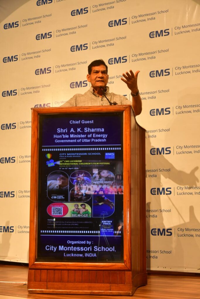 सूर्योदय भारत समाचार सेवा, लखनऊ : लखनऊ के सिटी मॉन्टेसरी स्कूल (CMS), कानपुर रोड परिसर में चिल्ड्रन फिल्म फेस्टिवल का भव्य शुभारंभ किया गया। कार्यक्रम में मुख्य अतिथि के रूप में मंत्री ए.के. शर्मा ने सहभागिता की। फेस्टिवल का उद्घाटन प्रख्यात शिक्षाविद प्रोफेसर गीता गांधी किंगडन द्वारा किया गया, जिन्होंने आयोजन के उद्देश्य एवं स्वरूप पर विस्तार से प्रकाश डाला।
