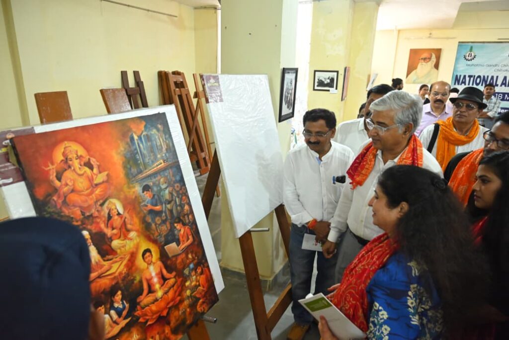 कार्यक्रम के दौरान कला वीथिका में प्रदर्शित विभिन्न चित्रों का अवलोकन अतिथियों द्वारा किया गया। प्रदर्शनी में देश के विभिन्न भागों से आए कलाकारों द्वारा तैयार किए गए चित्र प्रदर्शित किए गए हैं, जिनमें प्रकृति, लोकजीवन, संस्कृति, सामाजिक सरोकार तथा समकालीन विषयों को आकर्षक रंगों और शैली में प्रस्तुत किया गया है।
