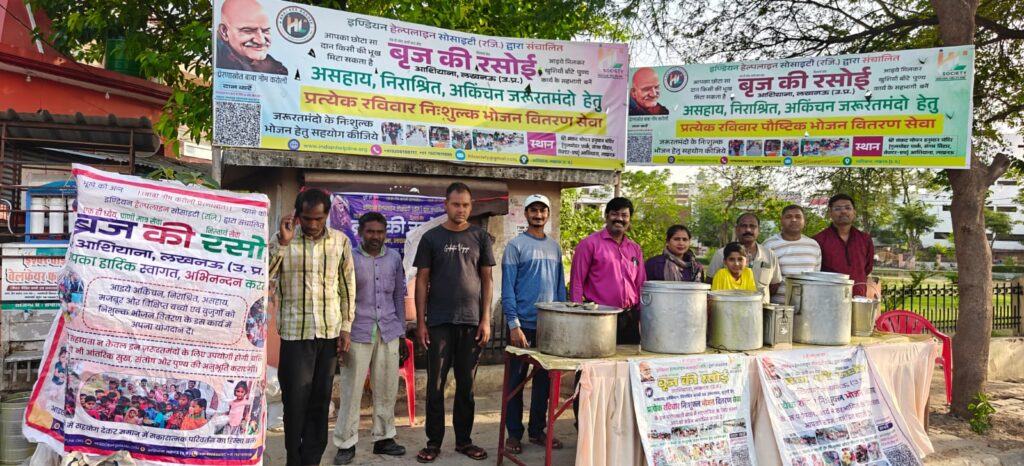 सूर्योदय भारत समाचार सेवा, आशियाना – लखनऊ : प्रेरणास्रोत बाबा नीम करौली जी की कृपा से इण्डियन हेल्पलाइन सोसाइटी (रजि.) द्वारा संचालित बृज की रसोई सेवा प्रकल्प के अंतर्गत आशियाना क्षेत्र में निःशुल्क पौष्टिक भोजन वितरण कार्यक्रम विधिवत एवं गरिमामय वातावरण में संपन्न हुआ।