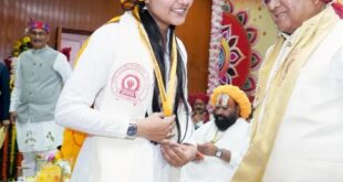 राज्यपाल मंगू भाई ने प्रिया त्रिपाठी को दिया स्वर्ण पदक