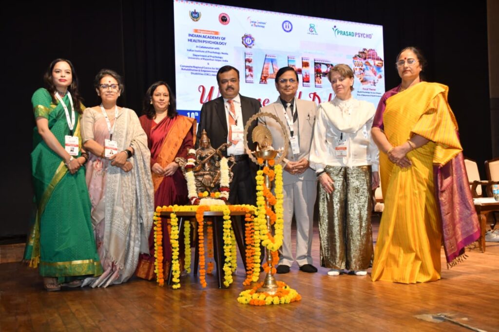 सूर्योदय भारत समाचार सेवा, जयपुर : भारतीय स्वास्थ्य मनोविज्ञान अकादमी के द्वारा दसवां अंतरराष्ट्रीय सम्मेलन 11 से 13 दिसंबर 2025 तक राजस्थान इंटरनेशनल सेंटर में आयोजित हो रहा है। उद्घाटन समारोह की मुख्य अतिथि राजस्थान विश्वविद्यालय की कुलगुरु प्रो. अल्पना कटेजा, गेस्ट ऑफ़ ऑनर्स सारी एच नायबेर्ग (स्वीडन), कॉन्फ्रेंस चेयरमैन प्रो. आनंद कुमार, ऑर्गेनाइजिंग सेक्रेटरी डॉ. क्रांति के. श्रीवास्तव, कांफ्रेंस डायरेक्टर, मनोविज्ञान विभागाध्यक्ष राजस्थान विश्वविद्यालय प्रो. प्रेरणा पुरी, संयोजक डॉ. चंद्रानी सेन और सह-संयोजक डॉ. ज्योति के द्वारा दीप प्रज्वलित कर कार्यक्रम की शुरुआत की गई !