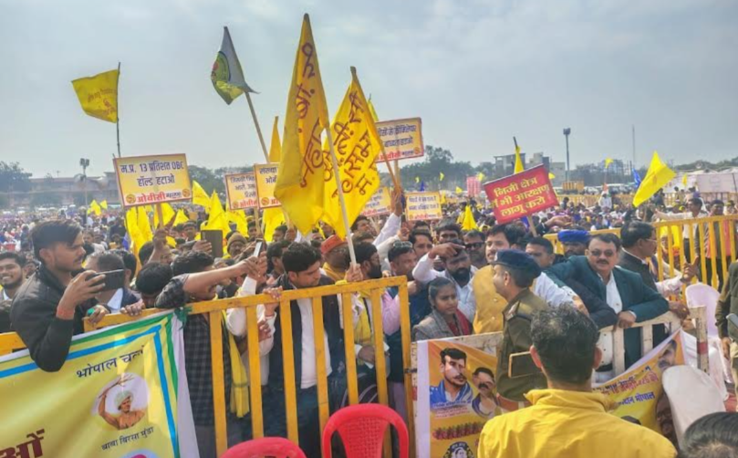 सूर्योदय भारत समाचार सेवा, भोपाल : राजधानी भोपाल के भेल दशहरा मैदान में रविवार को ओबीसी-एससी-एसटी संयुक्त मोर्चा द्वारा आयोजित आम सभा में राजनीतिक रणनीतिकार डॉ. अतुल मलिकराम ने भी शिरकत की और प्रदेश सरकार से ओबीसी के लिए 27 फीसदी आरक्षण को शीघ्र बहाल करने की स्पष्ट मांग की। इस आम सभा में प्रदेशभर से 70 से अधिक सामाजिक संगठनों की भागीदारी देखने को मिली।