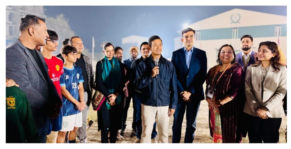 सूर्योदय भारत समाचार सेवा, वाराणसी : वाराणसी में भारतीय फुटबॉल के महान खिलाड़ी एवं पद्मश्री सम्मानित बाईचुंग भूटिया जी के सम्मान ‘एक शाम बाईचुंग भूटिया जी के नाम’ कार्यक्रम का भव्य एवं गरिमामय आयोजन किया गया। इस विशेष अवसर पर लोकप्रिय हास्य कलाकार, अभिनेता एवं लेखक संदीप शर्मा की उपस्थिति ने कार्यक्रम को युवा ऊर्जा और जीवंतता से भर दिया। यह आयोजन विद्यालय के उस विज़न को साकार करता प्रतीत हुआ, जिसके अंतर्गत विद्यार्थियों को मूल्यनिष्ठ, आत्मविश्वासी, सक्षम एवं वैश्विक दृष्टिकोण से युक्त नागरिक के रूप में विकसित करना लक्ष्य है।