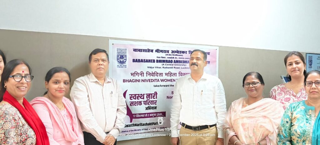 सूर्योदय भारत समाचार सेवा, लखनऊ : बाबासाहेब भीमराव अम्बेडकर विश्वविद्यालय, लखनऊ में मंगलवार 23 सितंबर को राष्ट्रीय आयुर्वेद दिवस के उपलक्ष्य में एक विशेष आयुर्वेदिक शिविर का आयोजन किया गया। यह शिविर विश्वविद्यालय स्वास्थ्य केंद्र, बीबीएयू एवं ओम आयुर्वेदिक केंद्र के संयुक्त तत्वावधान में आयोजित हुआ। जिसमें भगिनी निवेदिता महिला विकास प्रकोष्ठ, बीबीएयू की भी सक्रिय भागीदारी रही। इस अवसर पर प्रख्यात आयुर्वेदिक चिकित्सक डॉ. एस. के. पाण्डेय, विश्वविद्यालय के मुख्य चिकित्सा अधिकारी डॉ. विकास श्रीवास्तव, भगिनी निवेदिता महिला विकास प्रकोष्ठ की चेयरपर्सन प्रो. सुमन मिश्रा, चिकित्सा अधिकारी डॉ. हर्षिता सिंह विशेष रूप से उपस्थित रहीं। कार्यक्रम में अनेक विद्यार्थी, शोधार्थी, शिक्षकगण एवं कर्मचारीगण सम्मिलित हुए।