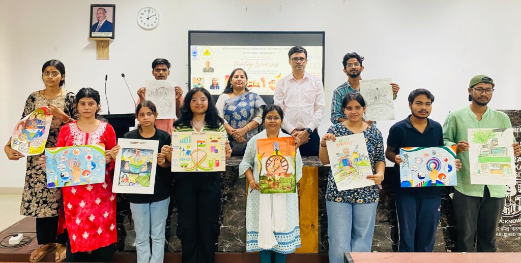 सूर्योदय भारत समाचार सेवा, लखनऊ : बाबासाहेब भीमराव अम्बेडकर विश्वविद्यालय में मंगलवार 30 सितंबर को सेवा पर्व 2025 के तहत ‘विकसित भारत के रंग कला के संग’ विषय पर पेंटिंग वर्कशॉप का आयोजन किया गया। यह कार्यक्रम उन्नत भारत अभियान के अंतर्गत आयोजित किया गया, जिसमें मुख्य तौर पर उन्नत भारत अभियान के नोडल अधिकारी प्रो. नवीन कुमार अरोड़ा एवं पेंटिंग वर्कशॉप की नोडल अधिकारी डॉ. मोनिका शर्मा उपस्थित रहीं।
