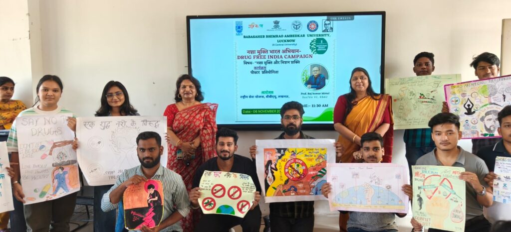 सूर्योदय भारत समाचार सेवा, लखनऊ : बाबासाहेब भीमराव अम्बेडकर विश्वविद्यालय में नशा मुक्ति समिति, बीबीएयू द्वारा ‘नशा मुक्ति जागरूकता’ विषय पर पोस्टर प्रतियोगिता का आयोजन किया गया l यह प्रतियोगिता विश्वविद्यालय के कुलपति प्रो. राज कुमार मित्तल के मार्गदर्शन में आयोजित की गयी, जिसमें मुख्य तौर पर नशा मुक्ति समिति की नोडल अधिकारी प्रो. शिल्पी वर्मा एवं कार्यक्रम समन्वयक डॉ. तरूणा उपस्थित रहीं।