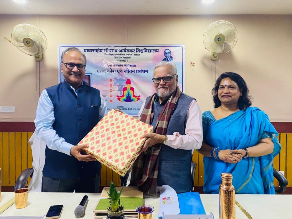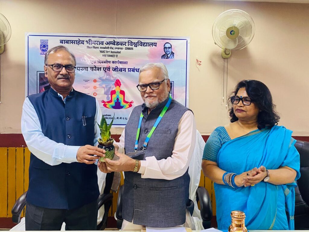 सूर्योदय भारत समाचार सेवा, लखनऊ : बाबासाहेब भीमराव अम्बेडकर विश्वविद्यालय में बुधवार 12 नवंबर को आंतरिक गुणवत्ता आश्वासन प्रकोष्ठ की ओर से ‘पंचकोश एवं जीवन प्रबंधन’ विषय पर एकदिवसीय कार्यशाला का आयोजन किया गया। कार्यक्रम की अध्यक्षता विश्वविद्यालय के कुलपति प्रो. राज कुमार मित्तल ने की। मुख्य अतिथि एवं वक्ता के तौर पर शिक्षा संस्कृति उत्थान न्यास, नई दिल्ली के राष्ट्रीय सचिव डॉ. अतुल कोठारी जी उपस्थित रहे। इसके अतिरिक्त मुख्य तौर पर आईक्यूएसी निदेशक प्रो. शिल्पी वर्मा एवं डॉ. नरेन्द्र सिंह उपस्थित रहे। सर्वप्रथम डॉ. नरेन्द्र सिंह ने कार्यक्रम में उपस्थित सभी लोगों का स्वागत किया एवं प्रो. शिल्पी वर्मा ने सभी को कार्यक्रम के उद्देश्य एवं रुपरेखा से अवगत कराया। मंच संचालन डॉ. नरेन्द्र सिंह द्वारा किया गया।