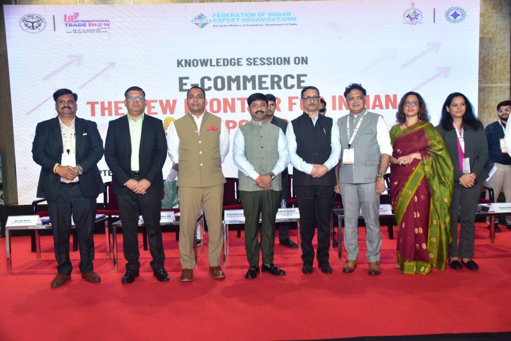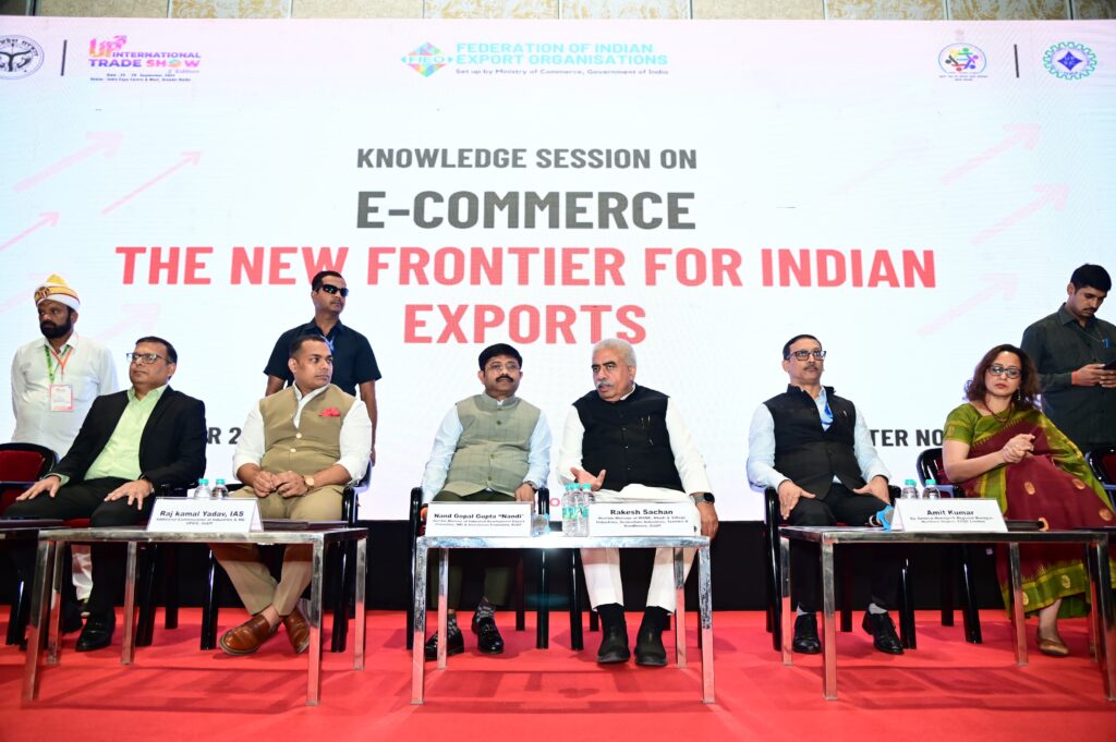सूर्योदय भारत समाचार सेवा, ग्रेटर नोएडा : इंडिया एक्सपो मार्ट ग्रेटर नोएडा में चल रहे उत्तर प्रदेश इंटरनेशनल ट्रेड शो के तीसरे दिन शनिवार को फेडरेशन ऑफ इंडियन एक्सपोर्ट ऑर्गेनाइजेशन (फियो) द्वारा आयोजित ई कॉमर्स-द फ्रंटीयर ऑफ इण्डियाज एक्सपोर्ट विषय पर आधारित नॉलेज सेशन में उत्तर प्रदेश सरकार के औद्योगिक विकास मंत्री नन्द गोपाल गुप्ता नन्दी मुख्य अतिथि के रूप में सम्मिलित हुए। इस दौरान मंत्री राकेश सचान भी मौजूद रहे।