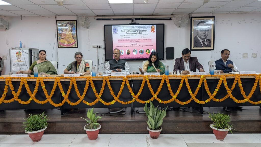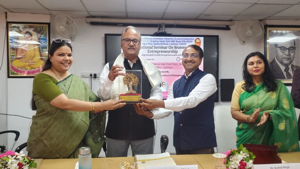 सूर्योदय भारत समाचार सेवा, लखनऊ : प्रबंधन अध्ययन विभाग, बाबासाहेब भीमराव अंबेडकर विश्वविद्यालय (बीबीएयू), लखनऊ द्वारा बुधवार 19 नवंबर 2025 को महिला उद्यमिता पर राष्ट्रीय संगोष्ठी का सफल आयोजन किया गया। संगोष्ठी का उद्देश्य महिला-नेतृत्व वाले उद्यमों को प्रोत्साहित करना तथा विशिष्ट महिला उद्यमियों और विशेषज्ञों के मार्गदर्शन से छात्रों को प्रेरित करना था।