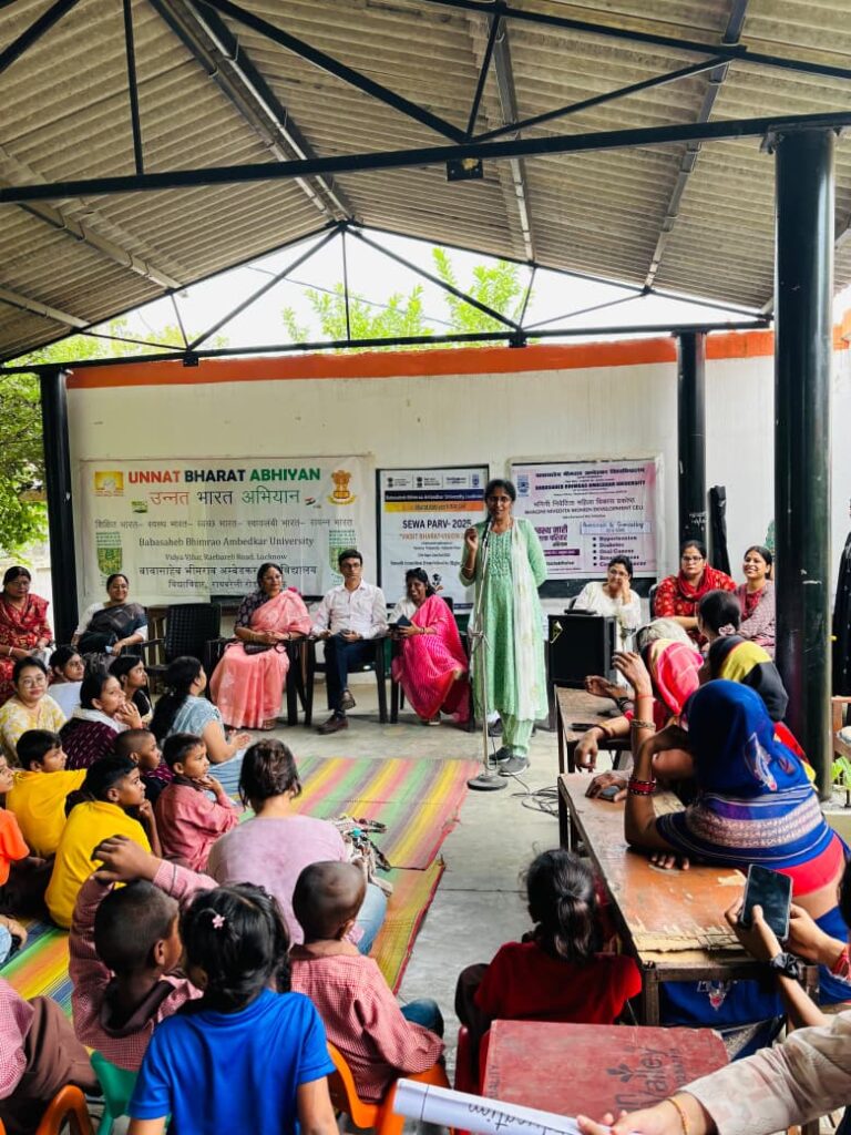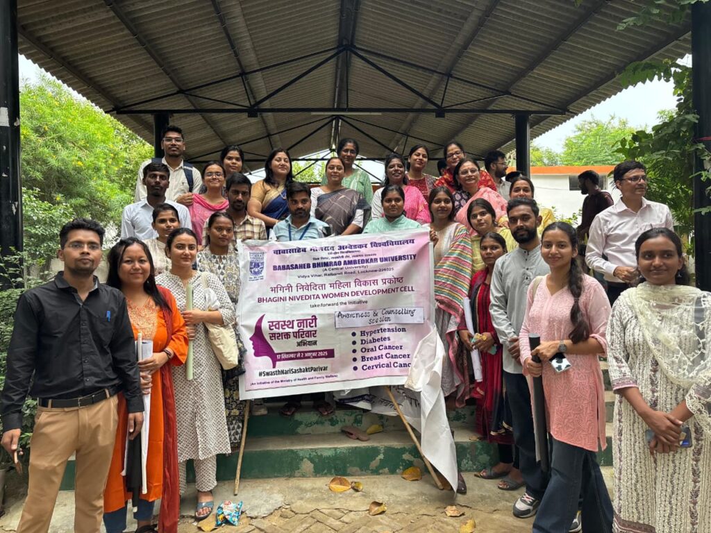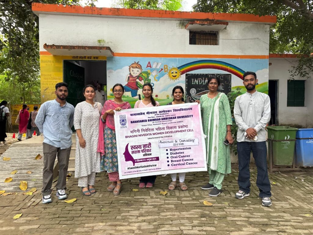 सूर्योदय भारत समाचार सेवा, लखनऊ : बाबासाहेब भीमराव अम्बेडकर विश्वविद्यालय, लखनऊ ने विश्वविद्यालय के कुलपति प्रो. राज कुमार मित्तल के गतिशील नेतृत्व में भारत सरकार के स्वास्थ्य एवं परिवार कल्याण मंत्रालय की पहल “स्वस्थ नारी सशक्त परिवार अभियान” को आगे बढ़ाते हुए मंगलवार 30 सितम्बर 2025 को प्रातः 9:30 बजे से प्राथमिक विद्यालय, डाढूपुर गाँव, सरोजिनी नगर, लखनऊ में महिला स्वास्थ्य पर केन्द्रित “जागरूकता एवं परामर्श सत्र” का आयोजन किया।