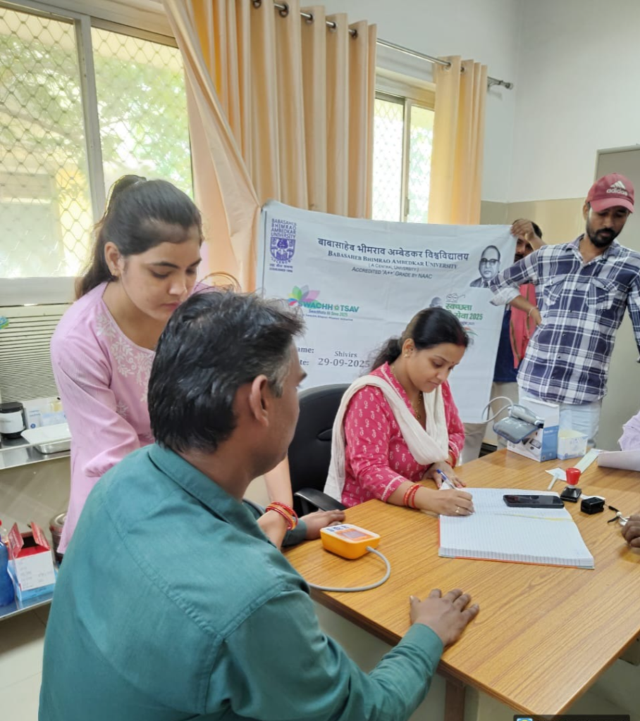 सूर्योदय भारत समाचार सेवा, लखनऊ : बाबासाहेब भीमराव अम्बेडकर विश्वविद्यालय में सोमवार 29 सितंबर को स्वच्छता अनुभाग की ओर से ‘स्वच्छता ही सेवा 2025’ अभियान के अंतर्गत विश्वविद्यालय स्वास्थ्य केंद्र में सफाई सेवकों के लिए स्वास्थ्य शिविर का आयोजन किया गया। इस अवसर पर प्रभारी सेनीटेशन डॉ. रवि शंकर वर्मा, मुख्य चिकित्सा अधिकारी डॉ. विकास श्रीवास्तव एवं चिकित्सा अधिकारी डॉ. हर्षिता सिंह उपस्थित रहीं।