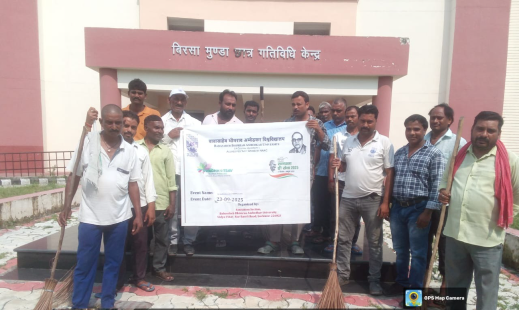 सूर्योदय भारत समाचार सेवा, लखनऊ : बाबासाहेब भीमराव अंबेडकर विश्वविद्यालय में मंगलवार 23 सितंबर को ‘स्वच्छता ही सेवा – 2025’ पहल के अंतर्गत बिरसा मुंडा छात्र गतिविधि केंद्र में स्वच्छता अनुभाग द्वारा विशेष सफाई अभियान संचालित किया गया। इस दौरान छात्र गतिविधि केंद्र एवं आस-पास के क्षेत्रों में व्यापक रूप से साफ-सफाई की गई और सभी को स्वच्छ व स्वस्थ वातावरण बनाए रखने का संदेश दिया गया।