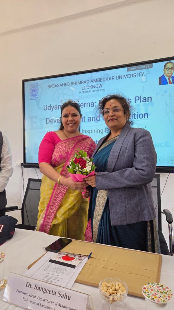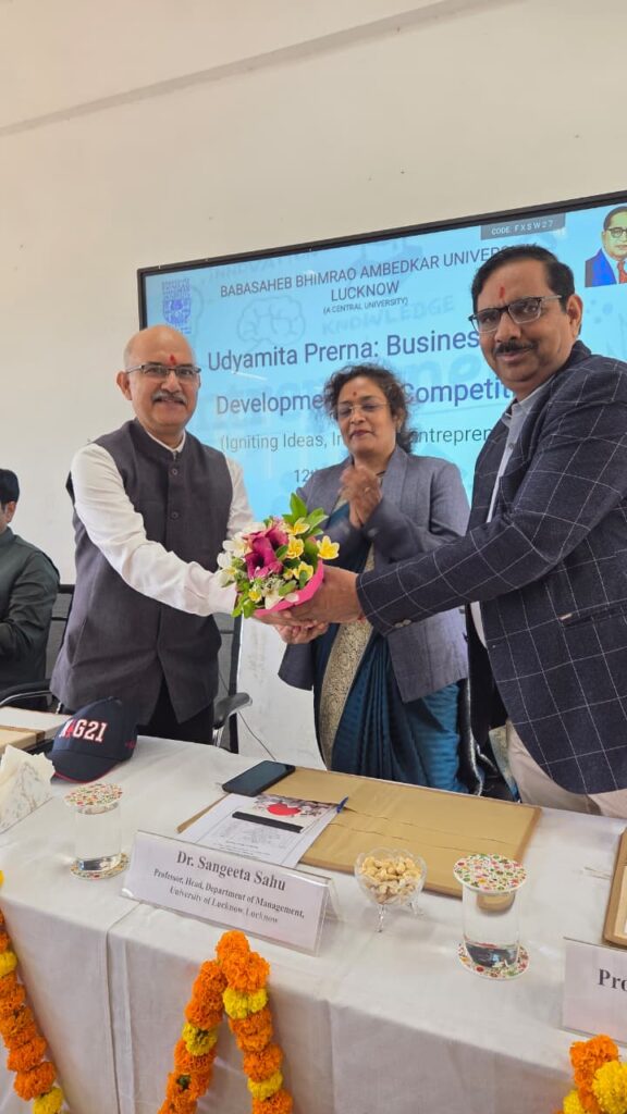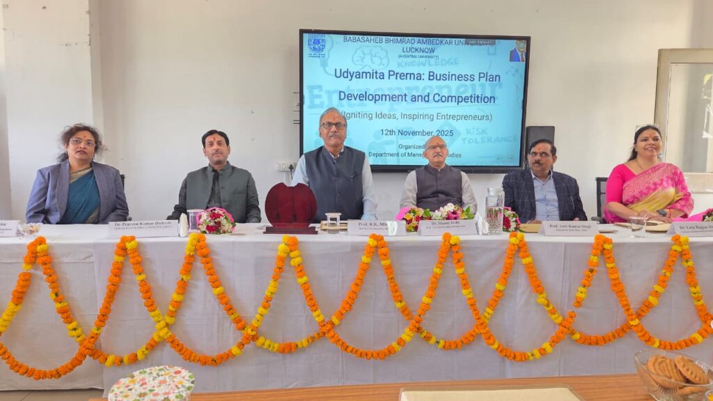 सूर्योदय भारत समाचार सेवा, लखनऊ : बाबासाहेब भीमराव अंबेडकर विश्वविद्यालय (बीबीएयू), लखनऊ के प्रबंधन अध्ययन विभाग द्वारा बुधवार 12 नवंबर 2025 को “उद्यमिता प्रेरणा: बिजनेस प्लान डेवलपमेंट एंड प्रतियोगिता (फेज-II)” का सफल आयोजन किया गया। इस कार्यक्रम का उद्देश्य विद्यार्थियों में नवाचार, सृजनशीलता और उद्यमशीलता की भावना को बढ़ावा देना तथा उनके विचारों को प्रभावी उद्यमों में बदलने के लिए प्रेरित करना था।