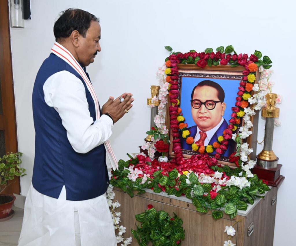 सूर्योदय भारत समाचार सेवा, लखनऊ : उत्तर प्रदेश के उपमुख्यमंत्री केशव प्रसाद मौर्य ने महान विधि वेत्ता एवं सामाजिक भेदभाव के विरुद्ध अभियान चलाने वाले, संविधान शिल्पी भारत रत्न ,बाबा साहब डा० भीमराव आंबेडकर के परिनिर्वाण दिवस पर उन्हें विनम्र व आत्मिक श्रद्धांजलि अर्पित की है। केशव प्रसाद मौर्य ने शनिवार को अपने कैम्प कार्यालय 7-कालिदास मार्ग पर डा 0 भीमराव आंबेडकर के चित्र पर माल्यार्पण करते हुए श्रद्धासुमन अर्पित किए।