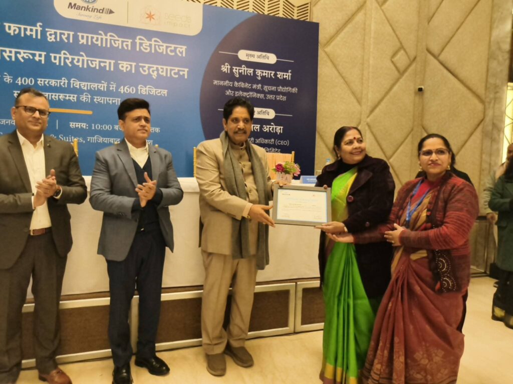 कार्यक्रम में कैबिनेट मंत्री, सूचना प्रौद्योगिकी एवं इलेक्ट्रॉनिक्स, उत्तर प्रदेश सरकार सुनील कुमार शर्मा की गरिमामयी उपस्थिति में आयोजन संपन्न हुआ। इस अवसर पर मैनकाइंड फार्मा लिमिटेड की मुख्य कार्यकारी अधिकारी श्रीमती शीतल अरोड़ा, सीड्स इम्पैक्ट के मुख्य कार्यकारी अधिकारी आर. पुरुषोत्तम, सूचना प्रौद्योगिकी एवं इलेक्ट्रॉनिक्स विभाग के वरिष्ठ अधिकारी उपस्थित रहे। सभी अतिथियों ने इस पहल को उत्तर प्रदेश में डिजिटल, समावेशी एवं गुणवत्तापूर्ण शिक्षा को सुदृढ़ करने की दिशा में एक महत्वपूर्ण कदम बताया।