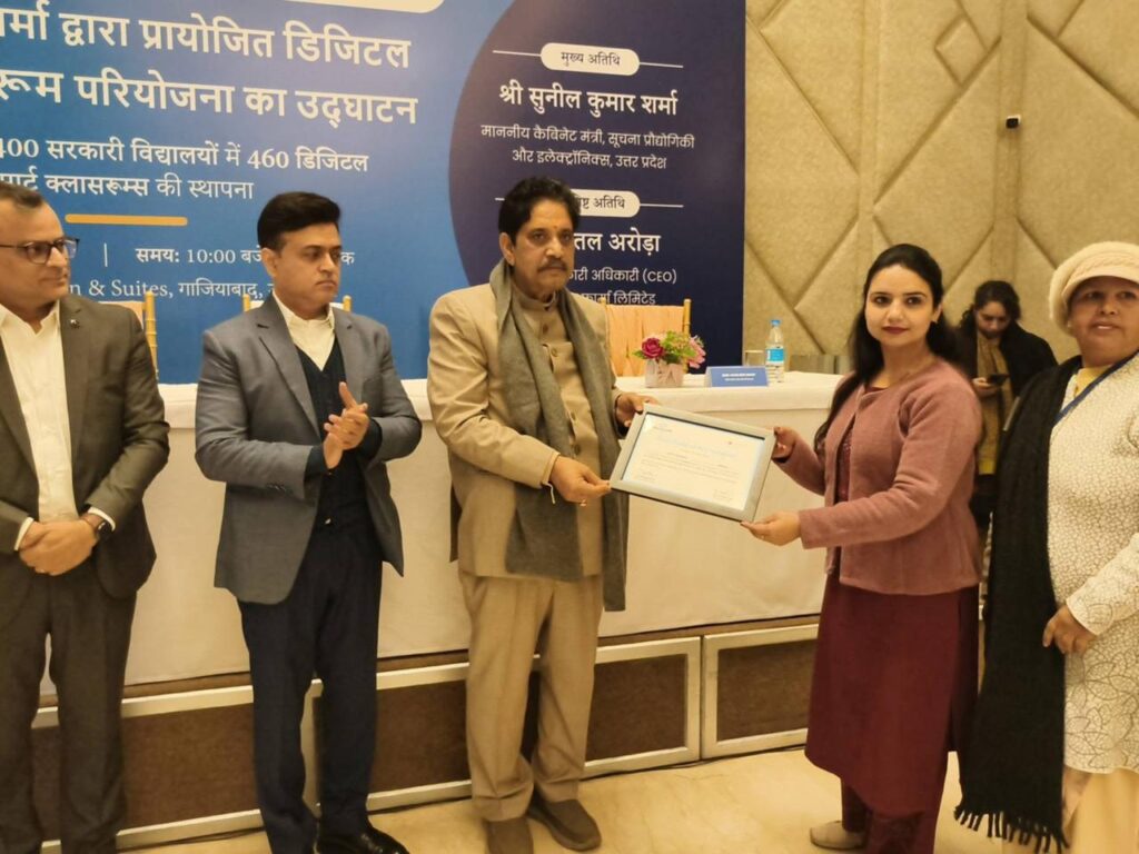 सूर्योदय भारत समाचार सेवा, लखनऊ / गाज़ियाबाद : उत्तर प्रदेश सरकार का सूचना प्रौद्योगिकी एवं इलेक्ट्रॉनिक्स विभाग प्रदेश में तकनीक आधारित शिक्षा को सशक्त करने तथा डिजिटल उत्तर प्रदेश के विजन को साकार करने की दिशा में निरंतर प्रभावी कदम उठा रहा है। कैबिनेट मंत्री, सूचना प्रौद्योगिकी एवं इलेक्ट्रॉनिक्स, उत्तर प्रदेश सरकार सुनील कुमार शर्मा ने गाजियाबाद में सरकारी विद्यालयों के लिए डिजिटल स्मार्ट कक्षाओं का शुभारंभ किया।