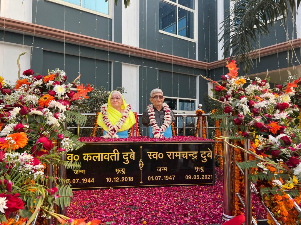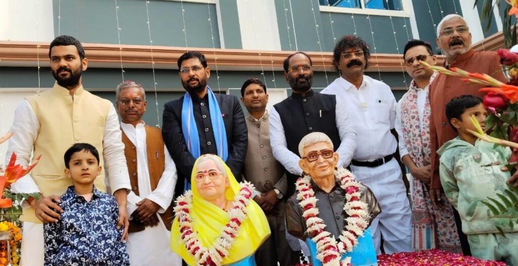 केआरसी पब्लिक स्कूल की प्रेरणास्रोत एवं संस्थापक माता – पिता की मूर्ति का स्कूल प्रांगण में भावपूर्ण अनावरण