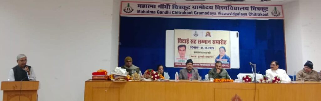 सूर्योदय भारत समाचार सेवा, चित्रकूट : महात्मा गांधी चित्रकूट ग्रामोदय विश्वविद्यालय के परीक्षा विभाग में पदस्थ स्टेनो टाइपिस्ट राम राज सिंह और दूरवर्ती अध्ययन एवं सतत शिक्षा केंद्र में पदस्थ सहायक श्रेणी 2 (कंप्यूटर ) कु. शैला देशमुख की अधिवार्षिकी आयु पूर्ण करने पर उन्हें बुधवार कुलगुरु प्रो आलोक चौबे की अध्यक्षता में संपन्न विदाई सह सम्मान समारोह में ग्रामोदय परिवार द्वारा पूरे आत्मीय सम्मान के साथ विदाई दी गई।