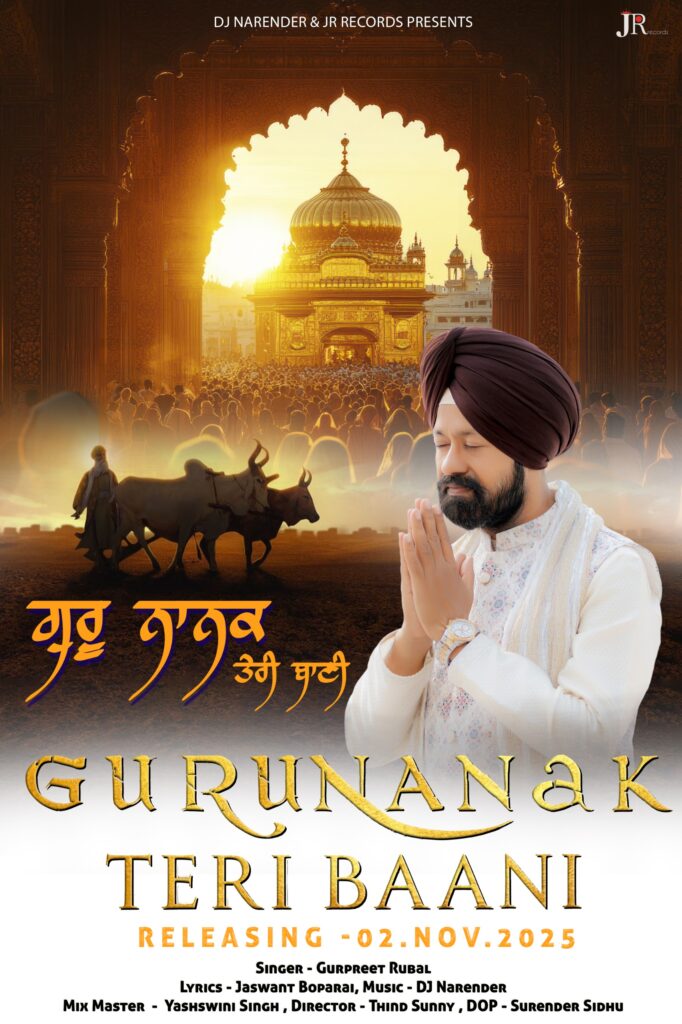 भीम प्रकाश शर्मा, श्रीगंगानगर : शहर के सुरीले गायक गुरप्रीत “रूबल” गुरु पर्व के मौक़े पर गुरु नानक देव जी के चरणों में अपनी हाज़िरी लगवाते हुए एक नया गीत लेकर आये हैं। “गुरुनानक तेरी बाणी” नामक यह गीत 2 नवंबर रविवार को शाम 5 बजे के बाद यू ट्यूब और सोशल मीडिया चैनल्स पर रिलीज़ कर दिया गया।इस अर्थपूर्ण और अनूठे गीत को काफ़ी पसंद किया जा रहा है।