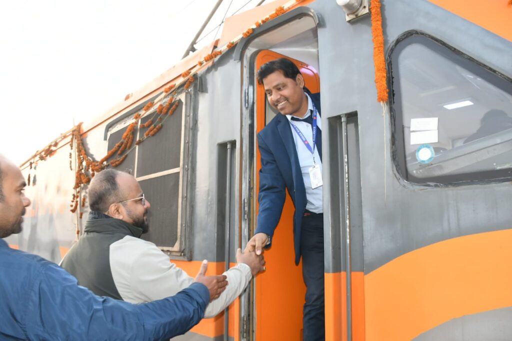 सूर्योदय भारत समाचार सेवा लखनऊ : गोमतीनगर रेलवे स्टेशन मंगलवार सुबह उत्सव के रंग में रंग गया, जब प्रधानमंत्री नरेंद्र मोदी द्वारा शुभारंभ की गई गाड़ी सं0 05949 डिब्रुगढ़-गोमती नगर अमृत भारत उद्घाटन विशेष गाड़ी ने अपने प्रथम आगमन के साथ गोमतीनगर स्टेशन पर कदम रखा। फूलों की मालाओं के साथ लोको पायलटों, ट्रेन मैनेजर और यात्रियों का रेल अधिकारियों एवं कर्मचारियों ने दिल खोलकर स्वागत किया।