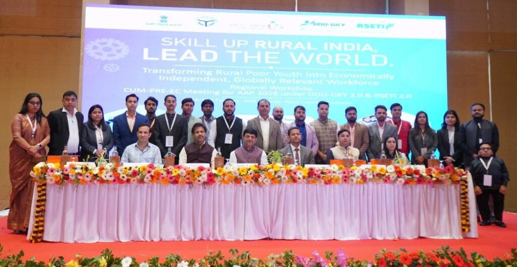 सूर्योदय भारत समाचार सेवा, लखनऊ : उत्तर प्रदेश को देश का अग्रणी स्किल हब बनाने के उद्देश्य से डीडीयू-जीकेवाई 2.0 और आरसेटीआई 2.0 के अंतर्गत आयोजित दो दिवसीय क्षेत्रीय कार्यशाला एवं प्री-ईसी बैठक का मंगलवार को लखनऊ स्थित होटल सेंट्रम में सफल समापन हुआ। समापन सत्र में प्रदेश के व्यावसायिक शिक्षा, कौशल विकास एवं उद्यमशीलता राज्य मंत्री (स्वतंत्र प्रभार) कपिल देव अग्रवाल ने कहा कि सरकार का लक्ष्य केवल प्रशिक्षण तक सीमित नहीं है, बल्कि अंतिम व्यक्ति तक रोजगार का अवसर पहुँचाना है। उन्होंने अंत्योदय के संकल्प को दोहराते हुए कहा कि ग्रामीण और वंचित युवाओं को आधुनिक कौशल से लैस कर आत्मनिर्भर बनाना ही सरकार की प्राथमिकता है।