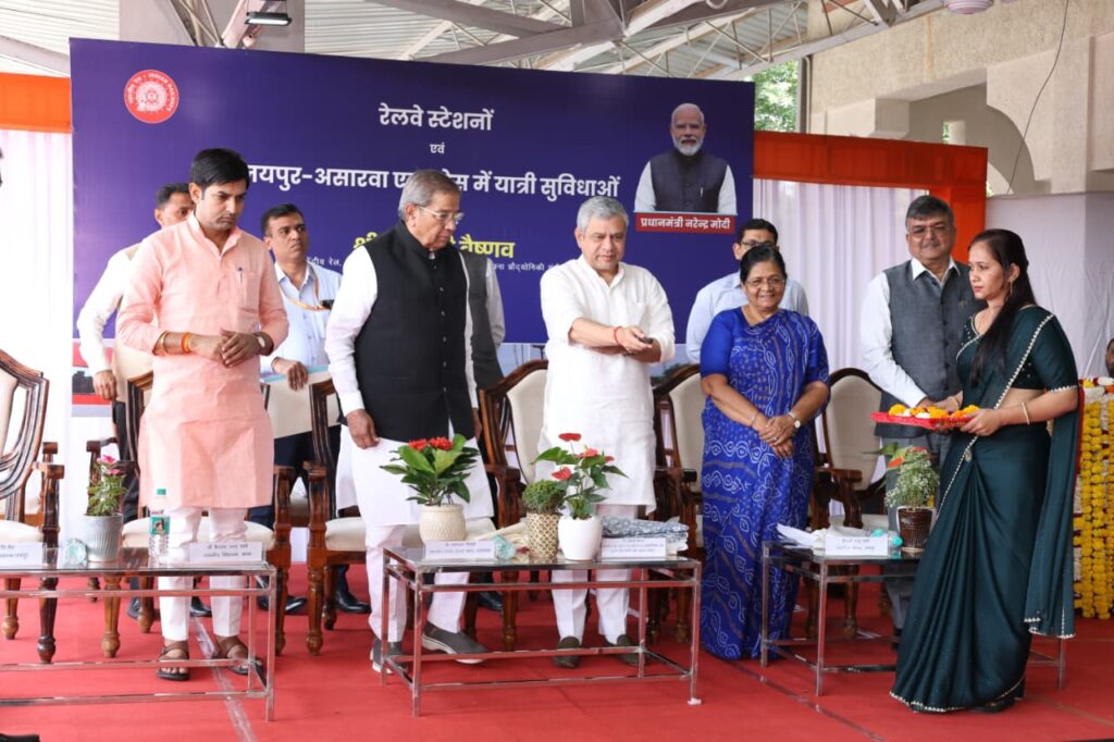 सूर्योदय भारत समाचार सेवा, जयपुर : अश्विनी वैष्णव, रेल, सूचना एवं प्रसारण और इलेक्ट्रॉनिकी एवं सूचना प्रौद्योगिकी मंत्री, भारत सरकार द्वारा उत्तर पश्चिम रेलवे पर विभिन्न यात्री सुविधाओं का विस्तार करते हुए 65 छोटे एवं मध्यम स्टेशनों पर नए प्लेटफॉर्म, प्लेटफॉर्म उन्नयन एवं विस्तार तथा एकीकृत यात्री सूचना प्रणाली का लोकार्पण एवं जयपुर-असारवा एक्सप्रेस के सभी वातानुकूलित श्रेणी के यात्रियों के लिए प्रिटेंड कंबल कवर की सुविधा का शुभारंभ 16.10.2025, गुरूवार को खातीपुरा (जयपुर) पर आयोजित कार्यक्रम से किया गया।
