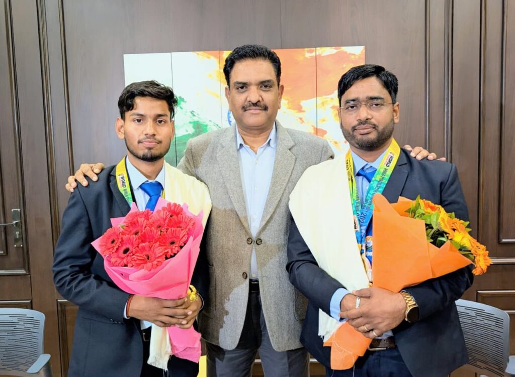 सूर्योदय भारत समाचार सेवा, लखनऊ : समाज कल्याण विभाग द्वारा संचालित जय प्रकाश नारायण सर्वाेदय विद्यालय, इटौरा (आगरा) के दो खिलाड़ियों ने वर्ल्ड पावरलिफ्टिंग चैंपियनशिप 2025 में गोल्ड और सिल्वर मेडल जीतकर अंतरराष्ट्रीय स्तर पर देश और प्रदेश का मान बढ़ाया है। समाज कल्याण राज्य मंत्री (स्वतंत्र प्रभार) असीम अरुण ने बुधवार को लखनऊ स्थित भागीदारी भवन में व्यायाम शिक्षक हरीश चंद्र और कक्षा 11 के छात्र रमन कुमार को सम्मानित किया। राज्यमंत्री ने दोनों खिलाड़ियों को बधाई देते हुए कहा कि यह उपलब्धि विभागीय प्रयासों और खिलाड़ियों की कड़ी मेहनत का परिणाम है।