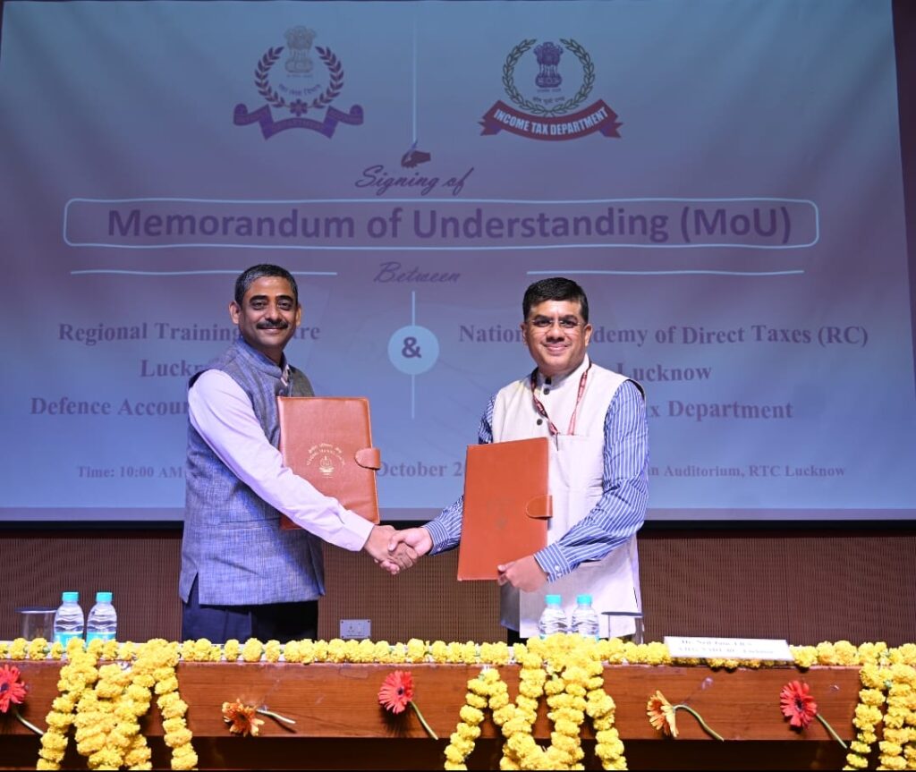 सूर्योदय भारत समाचार सेवा, लखनऊ : क्षेत्रीय प्रशिक्षण केंद्र (आरटीसी), लखनऊ (रक्षा लेखा विभाग का एक प्रशिक्षण संस्थान) और राष्ट्रीय प्रत्यक्ष कर अकादमी (एनएडीटी), क्षेत्रीय परिसर, लखनऊ ने प्रशिक्षण क्षमताओं और मानकों को बढ़ाने हेतु एक-दूसरे के साथ सहयोग करने हेतु 9 अक्टूबर 2025 को एक समझौता ज्ञापन पर हस्ताक्षर किए।