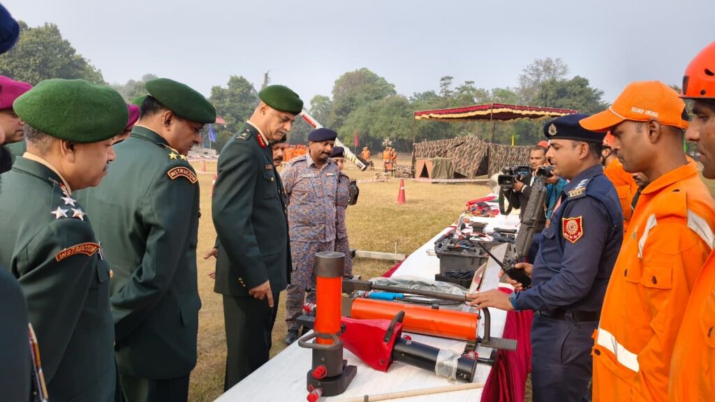 सूर्योदय भारत समाचार सेवा, लखनऊ : गुरुवार 18/12/25 को कैंट एरिया लखनऊ के AMC सेंटर एंड कॉलेज के परेड ग्राउंड में आर्मी के तमाम ट्रेनीज ऑफिसर्स के सम्मुख NDRF की टीम ने MCI एवं भूकंप से गिरी बिल्डिंग में रेस्क्यू ऑपरेशन का डिमॉन्स्ट्रेशन दिया।