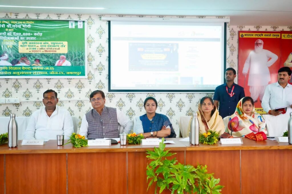 सूर्योदय भारत समाचार सेवा, मझगवां- सतना : प्रधानमंत्री द्वारा 2100 से अधिक कृषि परियोजनाओं का उद्घाटन एवं शिलान्यास कार्यक्रम 11 अक्टूबर 2025 को सम्पन्न हुआ। जिसमें प्रधानमंत्री नरेन्द्र मोदी द्वारा किसान भाई-बहनों को रु. 42000 करोड़ से अधिक की कृषि परियोजनाओं का उपहार पीएम धन-धान्य कृषि योजना और दलहन आत्मनिर्भरता मिशन का शुभारम्भ एवं कृषि अवसंरचना कोष, पशुपालन, मत्स्य पालन और खाद्य प्रसंस्करण क्षेत्र की 2100 से अधिक परियोजनाओं का उद्घाटन एवं शिलान्यास कार्यक्रम 11 अक्टूबर 2025 को राष्ट्रीय कृषि विज्ञान परिसर, पूसा, नई दिल्ली से किया गया। इस कार्यक्रम को आभाषी माध्यम से दीनदयाल शोध संस्थान कृषि विज्ञान केन्द्र, मझगवॉ, सतना में प्रातः 11.00 बजे से कृषकों के लिए प्रसारित किया गया।
