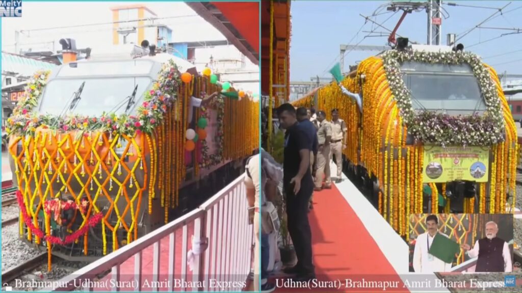 सूर्योदय भारत समाचार सेवा, नई दिल्ली : ओडिशा और गुजरात के बीच अमृत भारत एक्सप्रेस—शनिवार, प्रधानमंत्री नरेंद्र मोदी ने ब्रह्मपुर (ओडिशा) और उधना (गुजरात) के बीच अमृत भारत एक्सप्रेस को हरी झंडी दिखाकर रवाना किया।