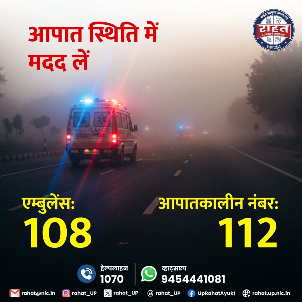 सूर्योदय भारत समाचार सेवा, लखनऊ : उत्तर प्रदेश में भीषण शीतलहर एवं घने कोहरे की चेतावनी के दृष्टिगत राहत आयुक्त डा0 हृषिकेश भास्कर याशोद ने कार्यालय स्थित कंट्रोल रूम से आमजन को एसएमएस के माध्यम से खराब मौसम की चेतावनी भेजी है। इसके साथ ही कंट्रोल रूम से प्रदेश के समस्त जनपदों में कम्बल वितरण, रैन बसेरों तथा अलाव की स्थिति की निगरानी भी की जा रही है। यही नहीं आम जनमानस द्वारा आपात स्थिति में 1070 पर कॉल आने के पश्चात तत्काल सहायता प्रदान की जा रही है।