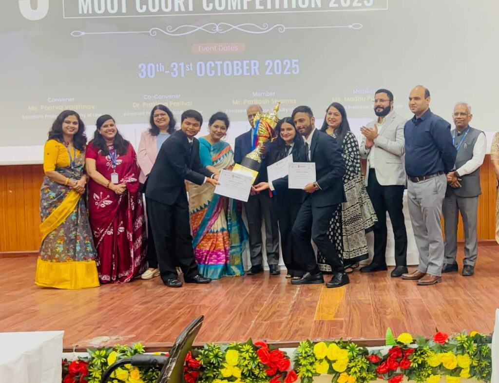 विभाग की छात्रा अंजु बाला (चतुर्थ वर्ष), आयुष सिंह (चतुर्थ वर्ष) और अविरल द्विवेदी (द्वितीय वर्ष) की टीम ने इंदौर में आयोजित ‘तृतीय डॉ. के. एल. ठकुराल मेमोरियल नेशनल मूट कोर्ट प्रतियोगिता, 2025’ में प्रथम स्थान प्राप्त कर उत्कृष्ट प्रदर्शन किया।