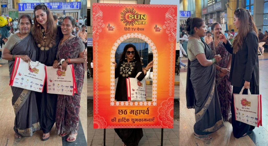 इस मौके को और विशेष बनाने के लिए, सन नियो के लोकप्रिय धारावाहिक ‘दिव्य प्रेम: प्यार हौर रहस्य की कहानी’ शो में राक्षसी की भूमिका निभा रहीं अभिनेत्री रिधिमा तिवारी ने मुंबई के एलटीटी स्टेशन पर उपस्थित होकर खुद यात्रियों को यह हैम्पर भेंट किए। उन्होंने परिवारों से बातचीत की, शुभकामनाएँ दीं और सभी के साथ खुशियाँ बाँटीं। हर एक हैम्पर को सन नियो कैनवास बैग में सजाया गया था, जिसमें पारंपरिक पूजा सामग्री, जैसे- लेठा (लाख से बनी रंगीन चूड़ियों), सिंदूर और आलता शामिल थे, जिसे प्रेम, आस्था और एकता का प्रतीक माना जाता है।