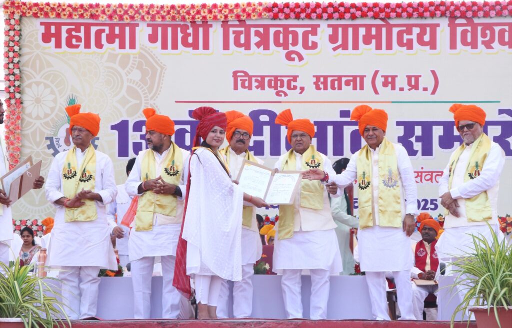 सूर्योदय भारत समाचार सेवा, चित्रकूट : महात्मा गांधी चित्रकूट ग्रामोदय विश्वविद्यालय का 13वां दीक्षांत समारोह विश्वविद्यालय के दीक्षांत प्रांगण में परम्परागत गरिमा, उल्लास और उत्साह के वातावरण में सम्पन्न हुआ। विश्वविद्यालय के कुलाधिपति और दीक्षांत समारोह के अध्यक्ष, मध्यप्रदेश के राज्यपाल मंगुभाई पटेल ने 37 छात्रों को शोध उपाधि व 35 उत्कृष्ट प्रदर्शन करने वाले विद्यार्थियों को पदक और 01 विद्यार्थी को नानाजी मेडल मंच से प्रदान किया। समारोह के मुख्य अतिथि प्रदेश शासन के उच्च शिक्षा मंत्री इंदर सिंह परमार रहे।