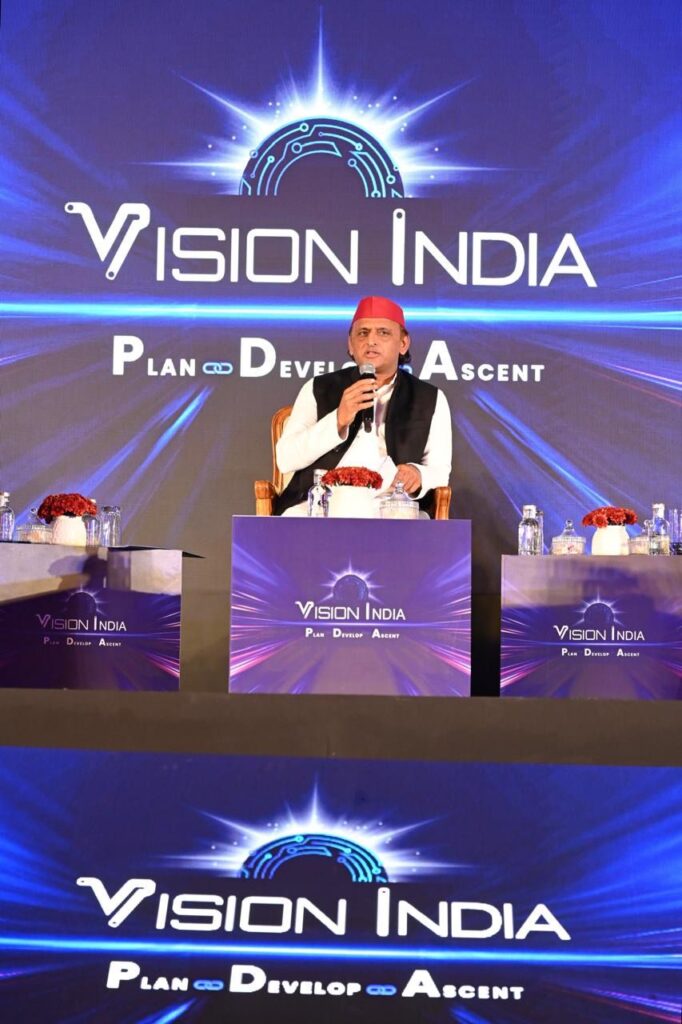 यादव ने कहा कि हमारे विजन इंडिया का मकसद यूपी के शहरों में बैंगलोर जैसा इकोसिस्टम विकसित करना है, उसी तरह की सुविधाएं देना। हमने लखनऊ में आईटी सिटी बनाया। अखिलेश यादव ने यूपी में छात्रों को 20 लाख लैपटॉप वितरण के सवाल पर कहा कि दुनिया के कई विकासशील देशें में राजनीतिक दल और सरकारें डिजिटल डिवाइड की बात करती है। एचपी कम्पनी के कई लोग आये और वितरण के बारे में देखा। उनके लिए भी आश्चर्य की बात थी कि लाखों लैपटॉप का सही वितरण हुआ। कई बच्चे हार्वर्ड विश्वविद्यालय भी पढ़ने गये और हम लोगों को धन्यवाद दिया।