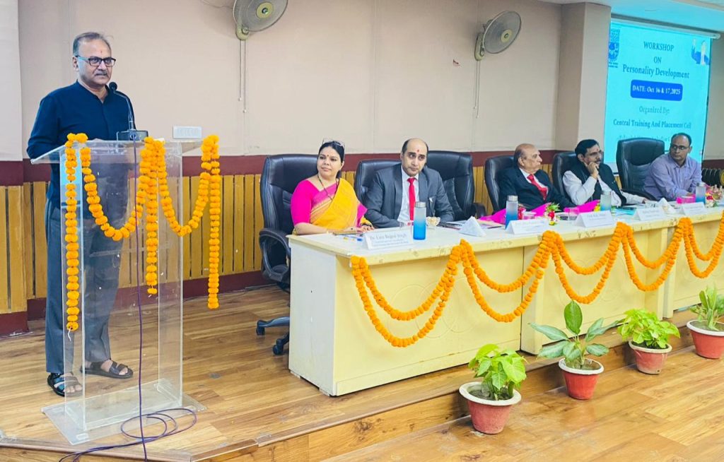 सूर्योदय भारत समाचार सेवा, लखनऊ : बाबासाहेब भीमराव अम्बेडकर विश्वविद्यालय में गुरुवार 16 अक्टूबर को सेंट्रल ट्रेनिंग एंड प्लेसमेंट सेल की ओर से ‘व्यक्तित्व विकास’ विषय पर आयोजित द्विदिवसीय कार्यशाला का उद्घाटन हुआ। कार्यक्रम की अध्यक्षता विश्वविद्यालय के कुलपति प्रो. राज कुमार मित्तल ने की। इसके अतिरिक्त मंच पर लाइफ कोच एवं मनोचिकित्सक प्रो. प्रबल फ्रैंक, रणनीतिकार एवं मोटीवेशनल स्पीकर बलराज नंदवानी, प्रबंधन अध्ययन विभाग के विभागाध्यक्ष एवं सेंट्रल ट्रेनिंग एंड प्लेसमेंट सेल के चेयरमैन प्रो. अमित कुमार सिंह एवं कार्यक्रम संयोजक एवं सेंट्रल ट्रेनिंग एंड प्लेसमेंट सेल की सह समन्वयक डॉ. लता बाजपेयी सिंह एवं डॉ. मनोज कुमार उपस्थित रहे। मंच संचालन का कार्य डॉ. चारु द्वारा किया गया।