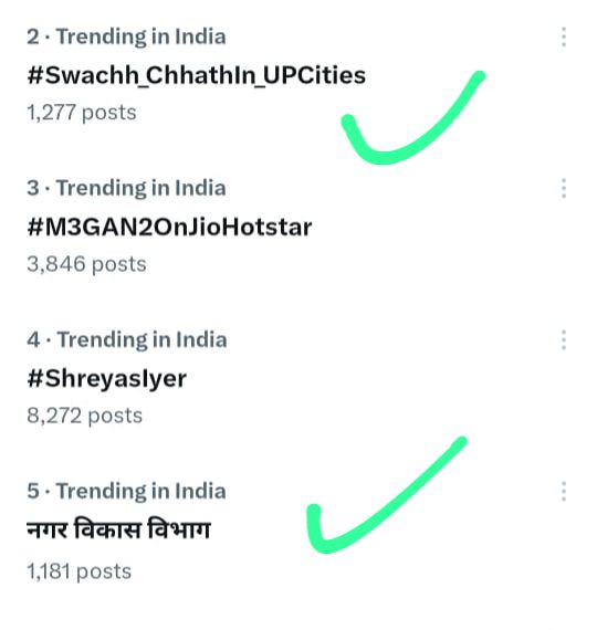 सोशल मीडिया पर #Swachh_ChhathIn _UPCities और #नगर विकास विभाग का ट्रेंड होना यह दर्शाता है कि जनता सरकार के प्रयासों से जुड़कर स्वच्छ, सुंदर और सशक्त नगरों के निर्माण में सक्रिय भागीदार बन रही है।