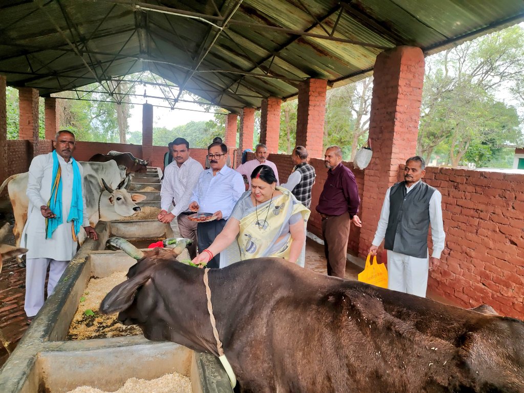 सूर्योदय भारत समाचार सेवा, चित्रकूट : गोपाष्टमी की पावन तिथि पर बुधवार महात्मा गांधी चित्रकूट ग्रामोदय विश्वविद्यालय के कुलगुरु प्रो भरत मिश्रा ने पूरी श्रद्धा के साथ ग्रामोदय विश्वविद्यालय की गौशाला में सपरिवार पहुंच कर वैदिक विधि से गौपूजा और अर्चना की। प्रो मिश्रा ने इस मौके पर गौशाला की गायों और गौवंशो को अपनी घरेलू रसोई में तैयार पूड़ी, कचौड़ी, सब्जी, गुड, खोए के लडडू आदि खिलाए। प्रो मिश्रा ने ग्रामोदय गौशाला में पल रही गायों, बछिया, बैलों, बछड़ों को दुलारते हुए अपना आत्मीय गौ प्रेम प्रकट किया। इस कार्यक्रम का संयोजन कर रहे गौशाला के प्रभारी डॉ उमेश कुमार शुक्ला ने कुलगुरु प्रो भरत मिश्रा के सपरिवार आगमन पर उनका स्वागत किया।