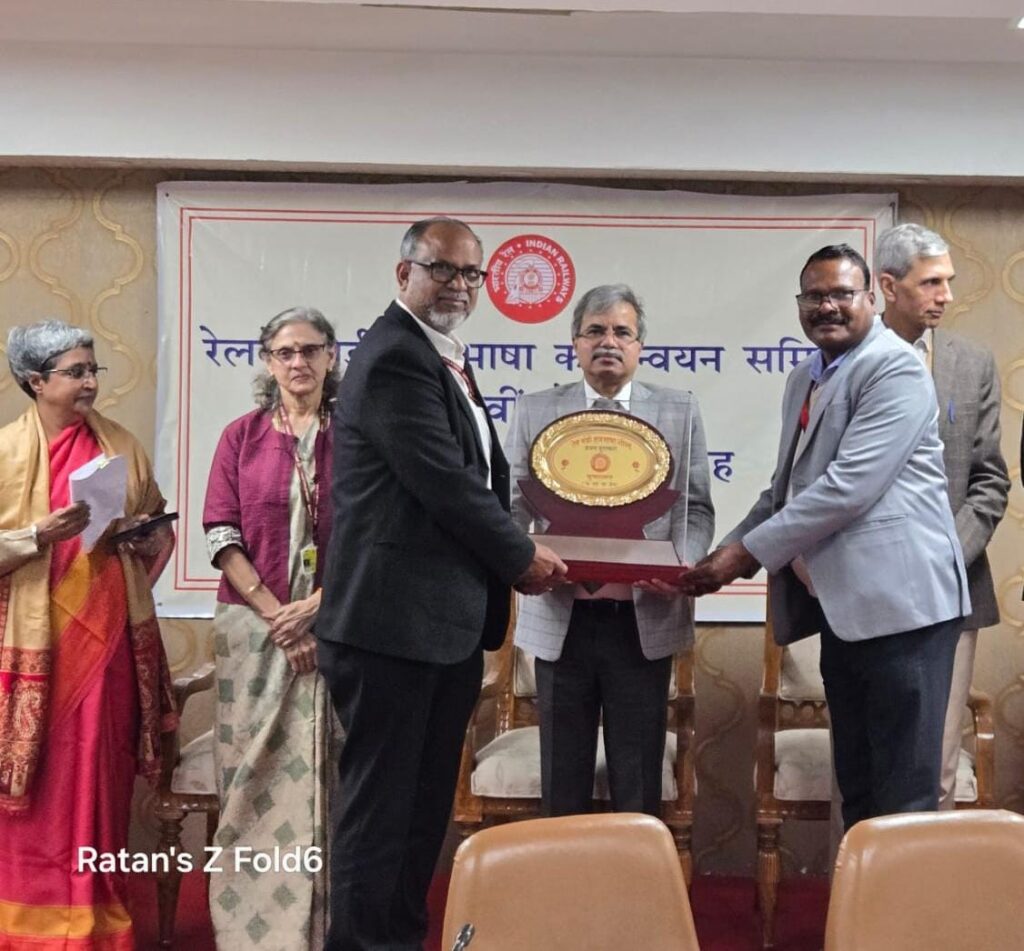 इस अवसर पर शुक्रवार 26.12.2025 को रेल भवन, नई दिल्ली के कॉन्फ्रेंस हॉल में आयोजित रेलवे बोर्ड राजभाषा कार्यान्वयन समिति की बैठक में यह पुरस्कार सतीश कुमार, अध्यक्ष एवं मुख्य कार्यपालक अधिकारी, रेलवे बोर्ड के कर-कमलों से एम. एस. हाशमी, मुख्य राजभाषा अधिकारी एवं मुख्य प्रशासनिक अधिकारी तथा सुधीर सरवरिया, मुख्य कारखाना प्रबंधक, माल डिब्बा मरम्मत कारखाना, कोटा ने ग्रहण किया। इस अवसर पर संतलाल मर्सकोले, वरिष्ठ राजभाषा अधिकारी भी उपस्थित रहे।